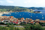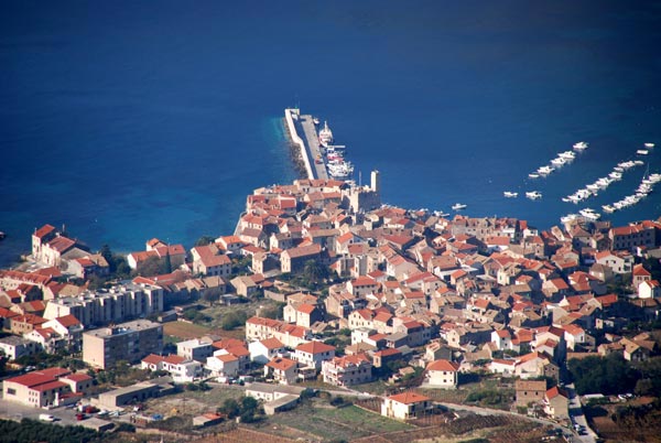 Luka ima dva ulaza s obje strane otočića Hosta. Vis ima redovitu trajektnu vezu sa Splitom; cestom povezan s Komižom.